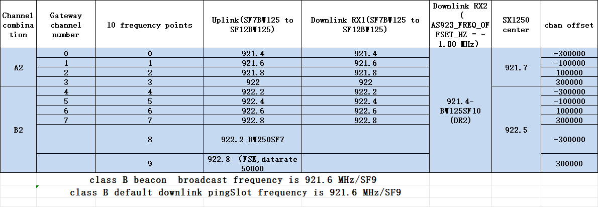 AS923-2 Gateway Uplink/Downlink Channel Table