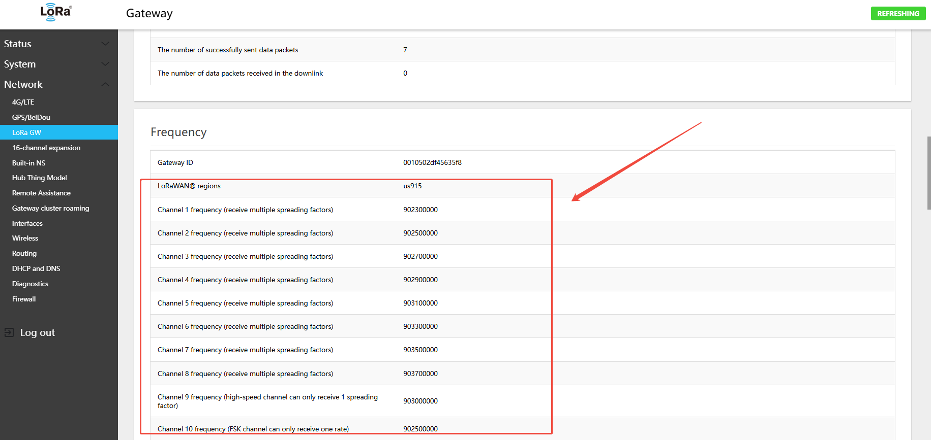 4.1 Configuring LoRa Gateway Frequency Band and Channels