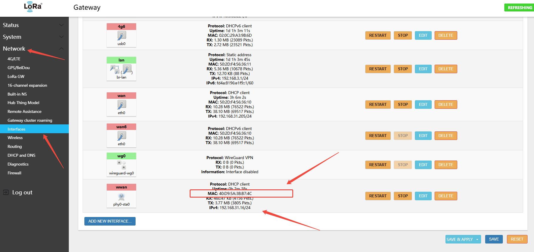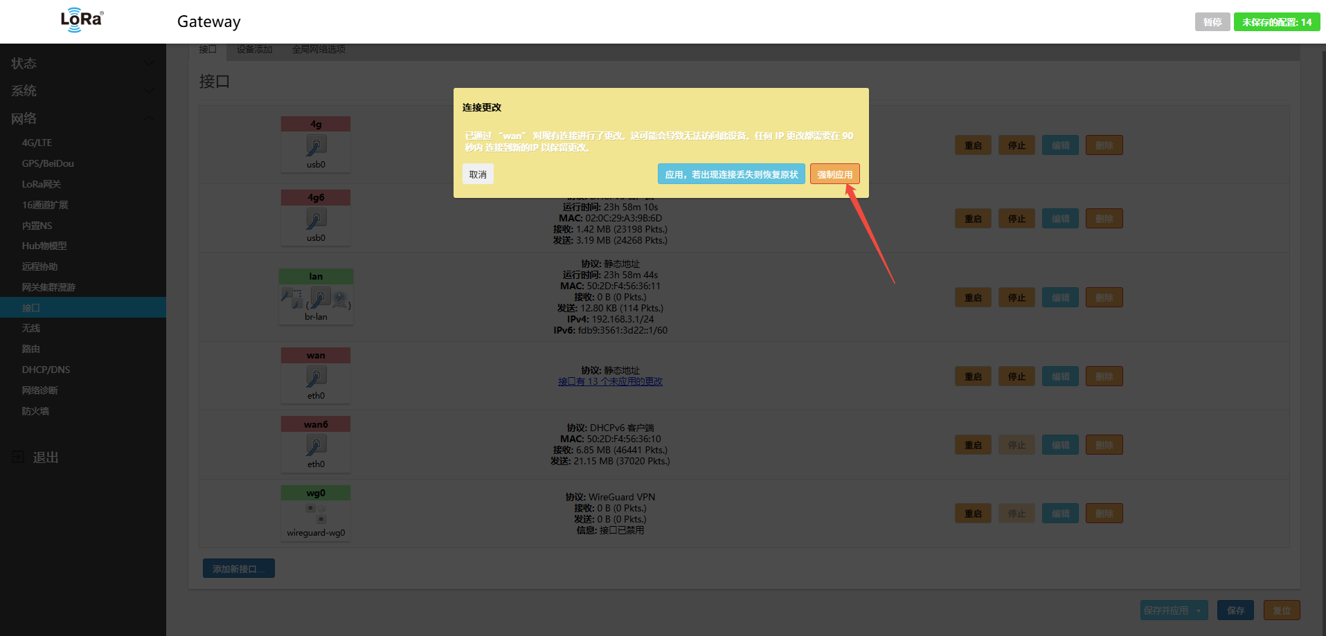 - 点击 WAN 接口右侧的 Edit(编辑) 按钮