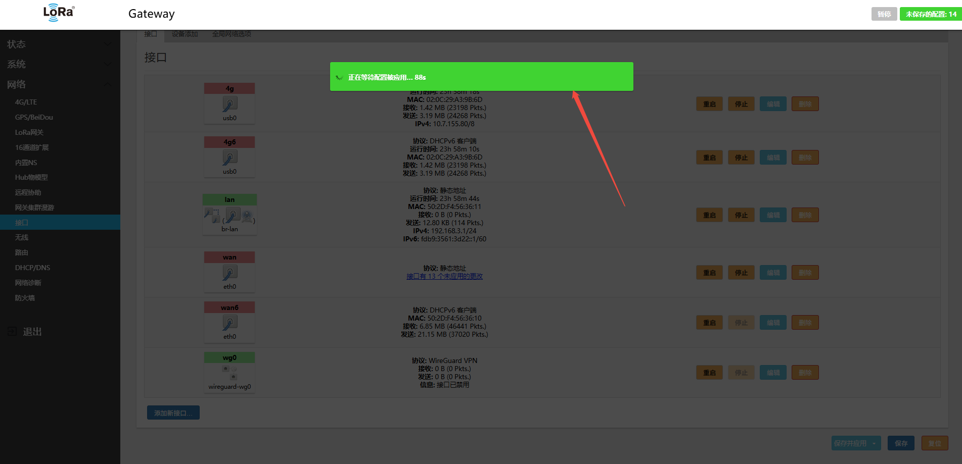 - 点击顶部菜单 Network(网络) → Interfaces(接口)
