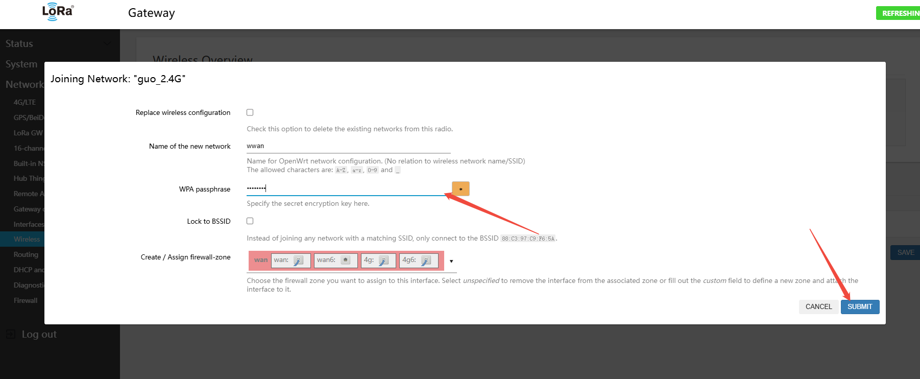在对应的WiFi热点栏点击“加入网络”,输入连接WiFi热点的密码,然后点击保存提交