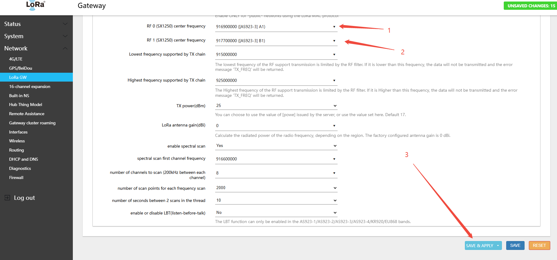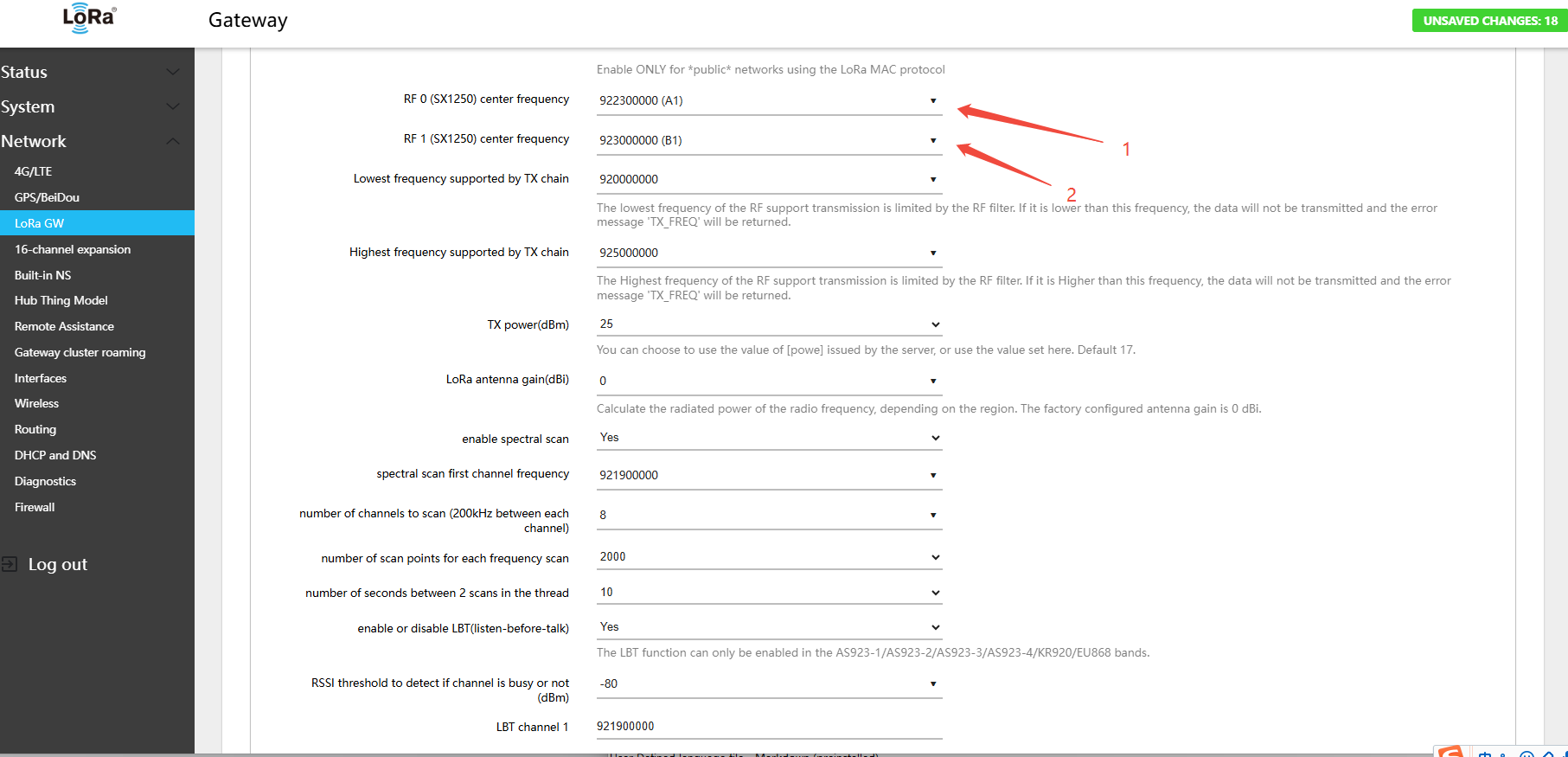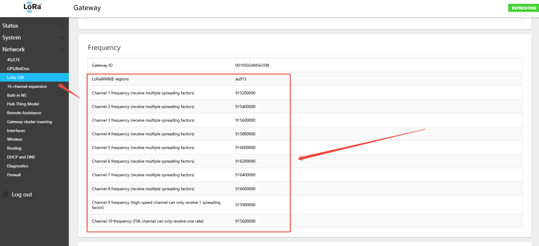 4.1 Configuring LoRa Gateway Frequency Band and Channels