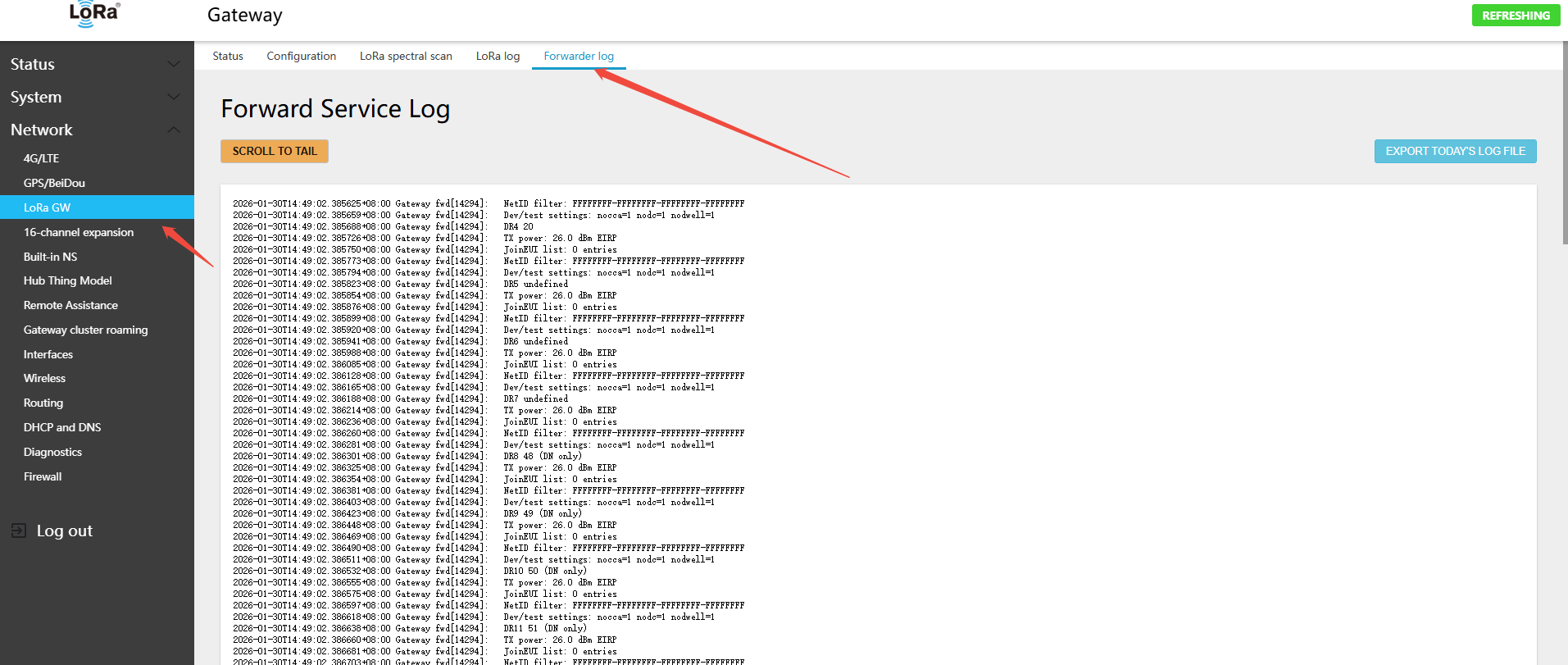 - Navigate to LoRa GW (LoRa gateway) → Configuration