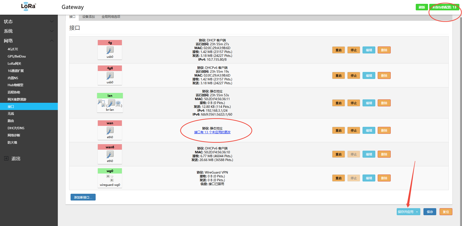 - 返回接口列表页面后,点击 Save & Apply(保存并应用) 按钮