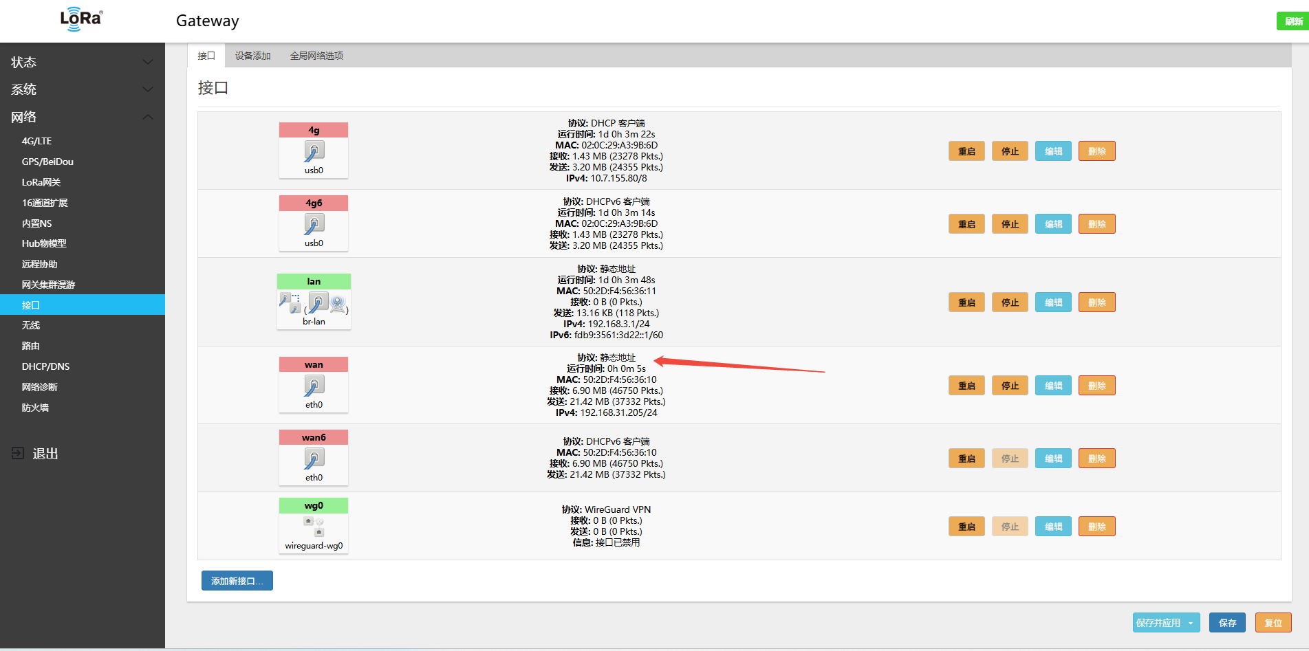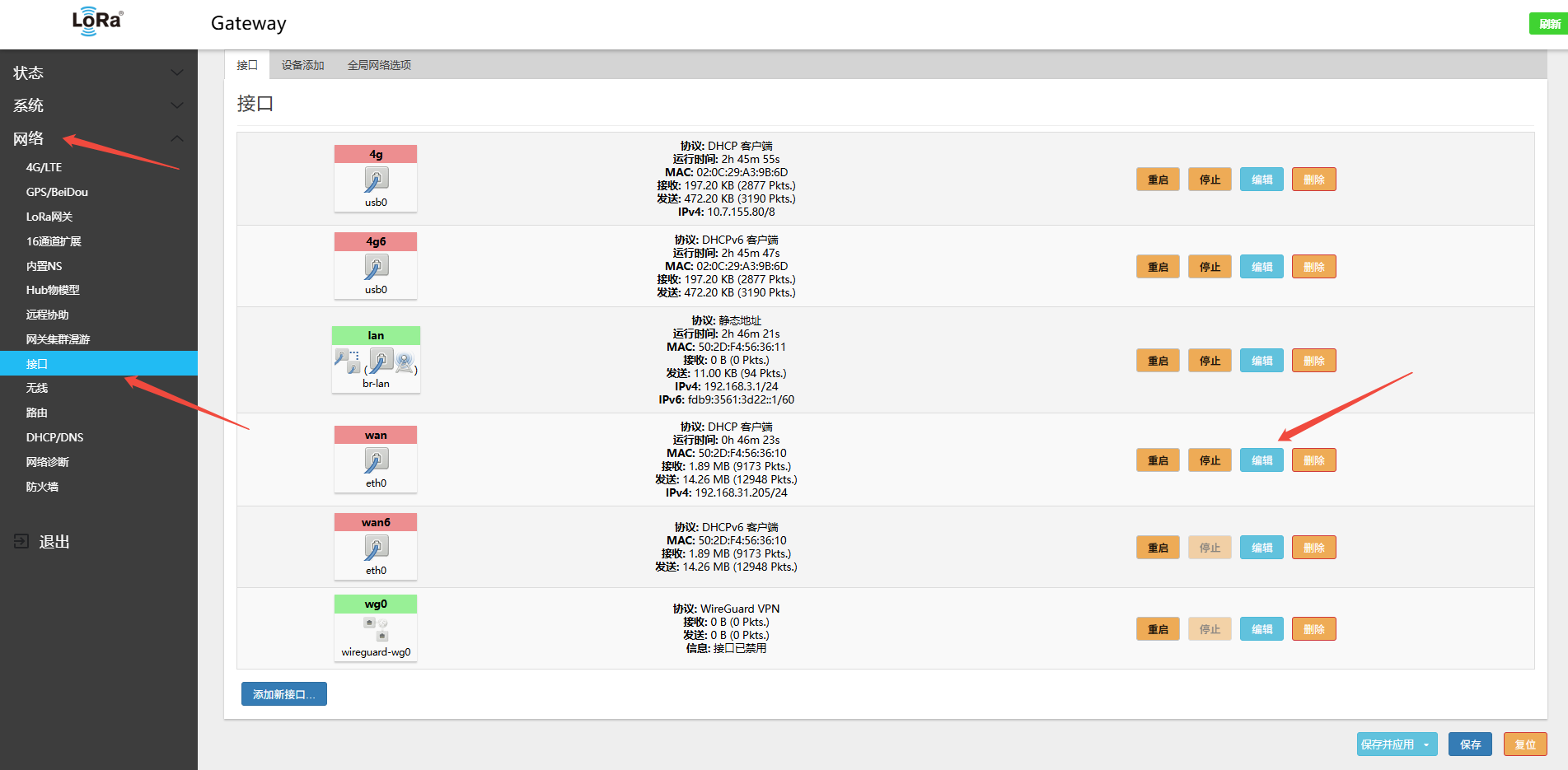 - 点击 WAN 接口右侧的 Edit(编辑) 按钮