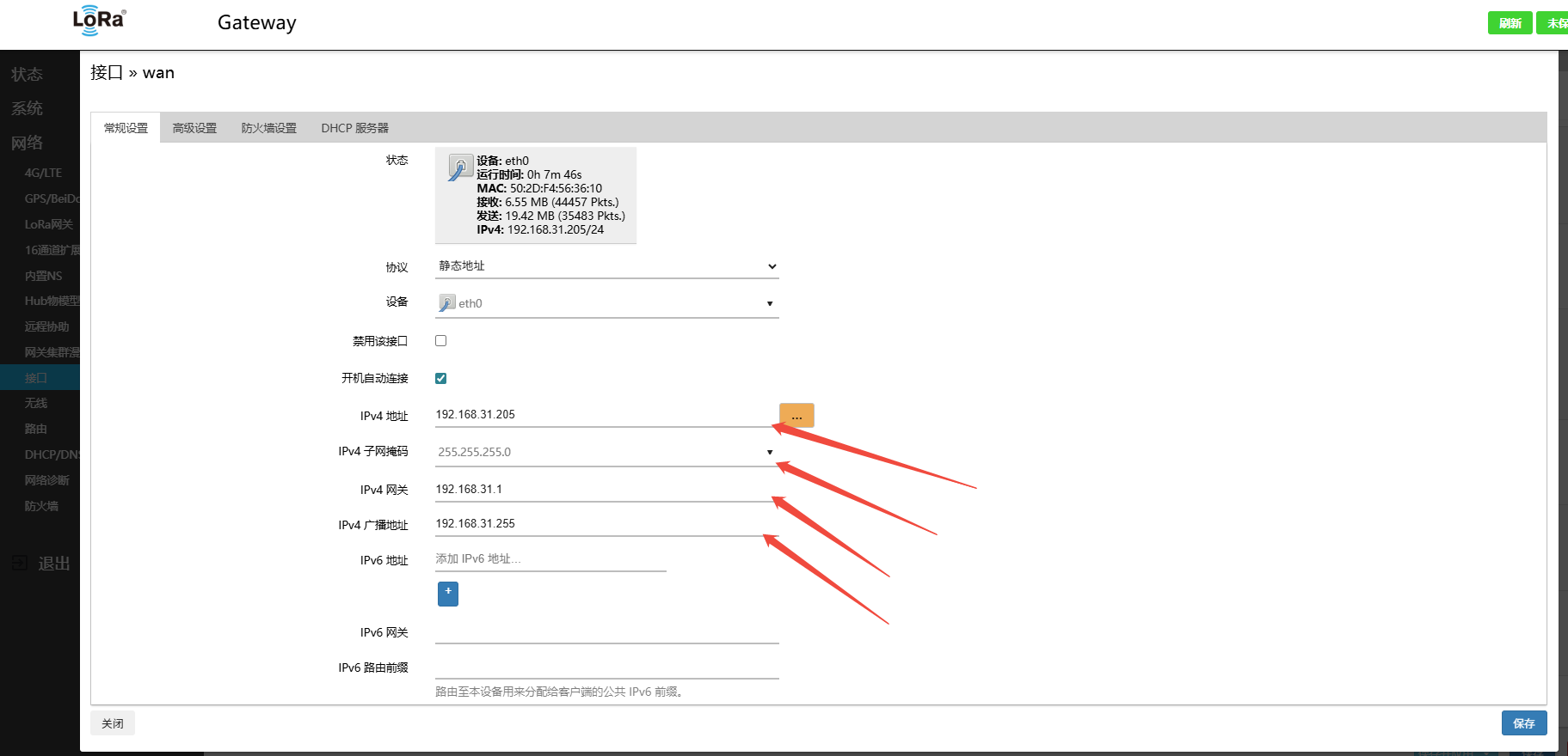 - 确认网关 WAN IP 地址(例如:192.168.31.205)