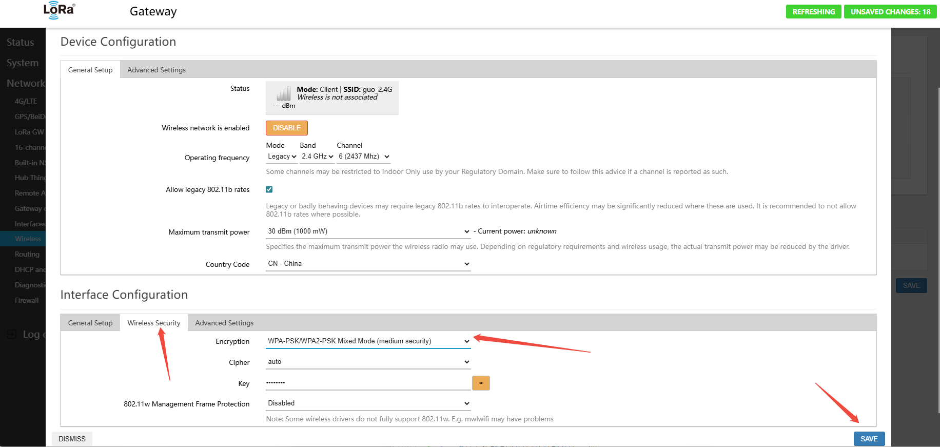 - Encryption:选择刚刚扫描时候的认证加密方式(WPA-PSK/WPA2-SAE 混合模式)