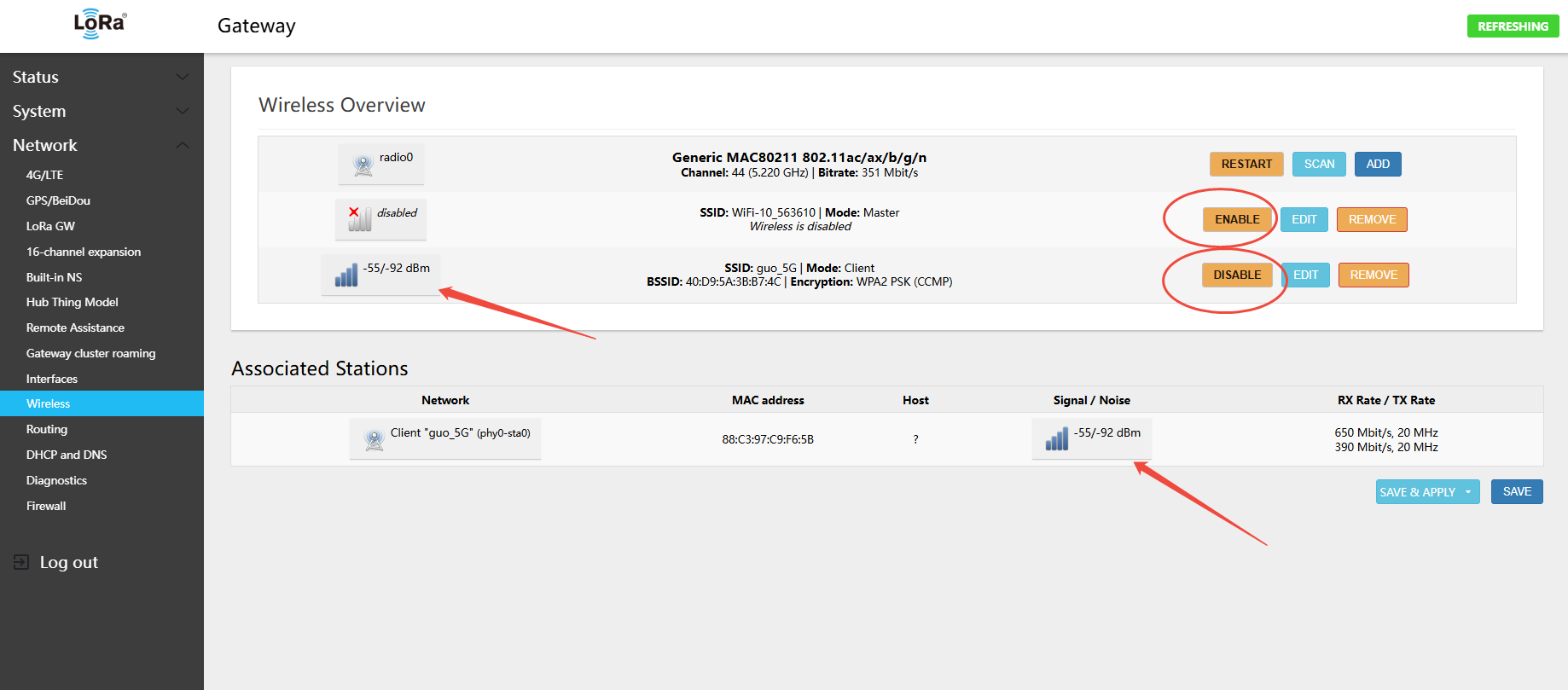 - 扫描列表里会包含2.4G和5.8G的WiFi热点,因为网关支持2.4G和5.8G,但是只能工作在一个信道下